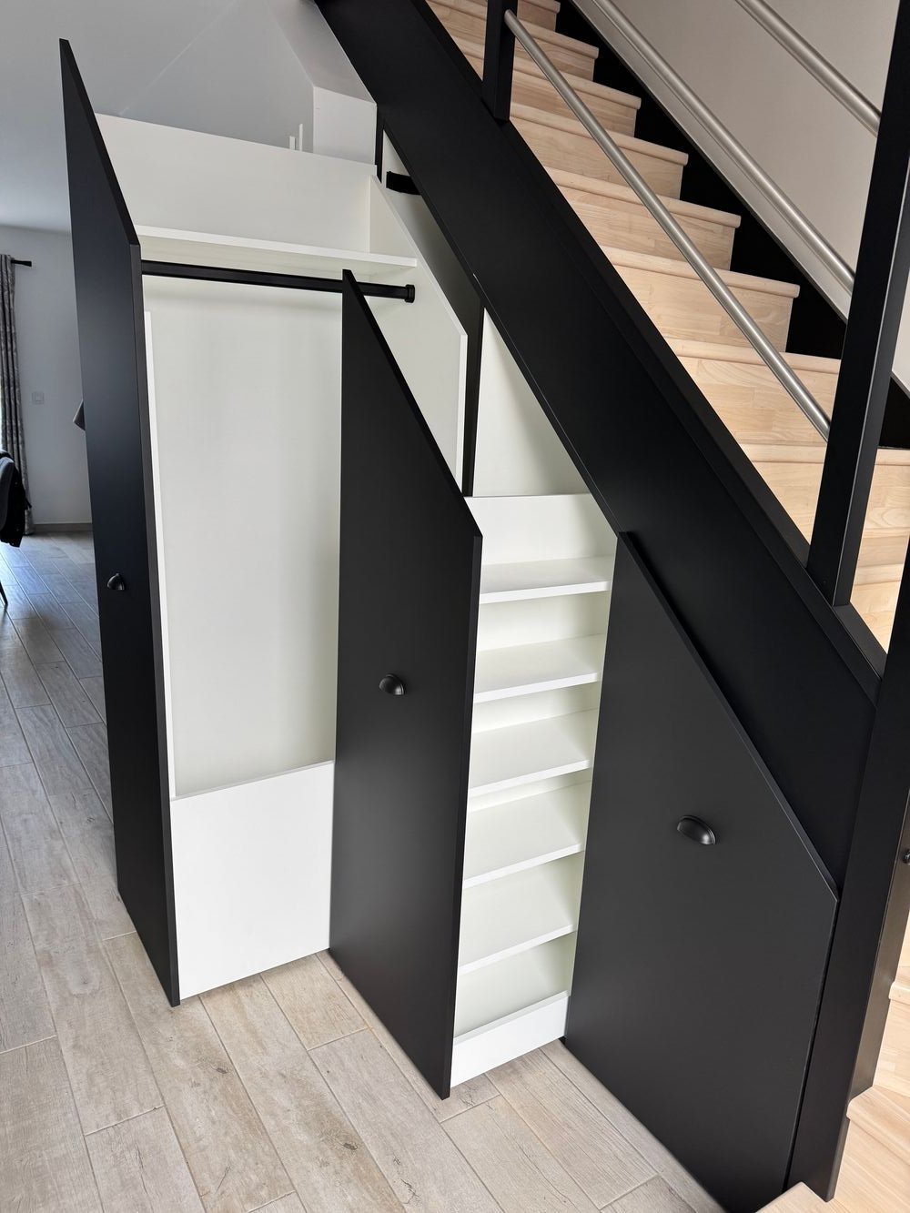 Dans une maison, il y a souvent des coins perdus ou difficilement accessibles, comme les niches, un escalier, des combles. Un agencement sur mesure permet d'utiliser cet espace, de le rendre accessible et de l'intégrer harmonieusement dans votre décoration.